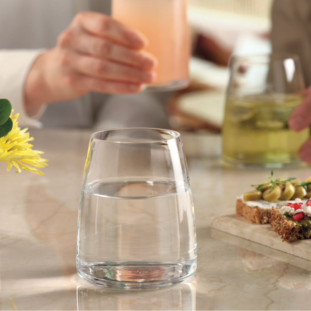 Material: Soda-lime glass = Silica (Sand) + Soda ash + Limestone + Small additives Care & Keeping Each glass is thoughtfully crafted to bring timeless beauty to your table. To keep it shining for years to come: