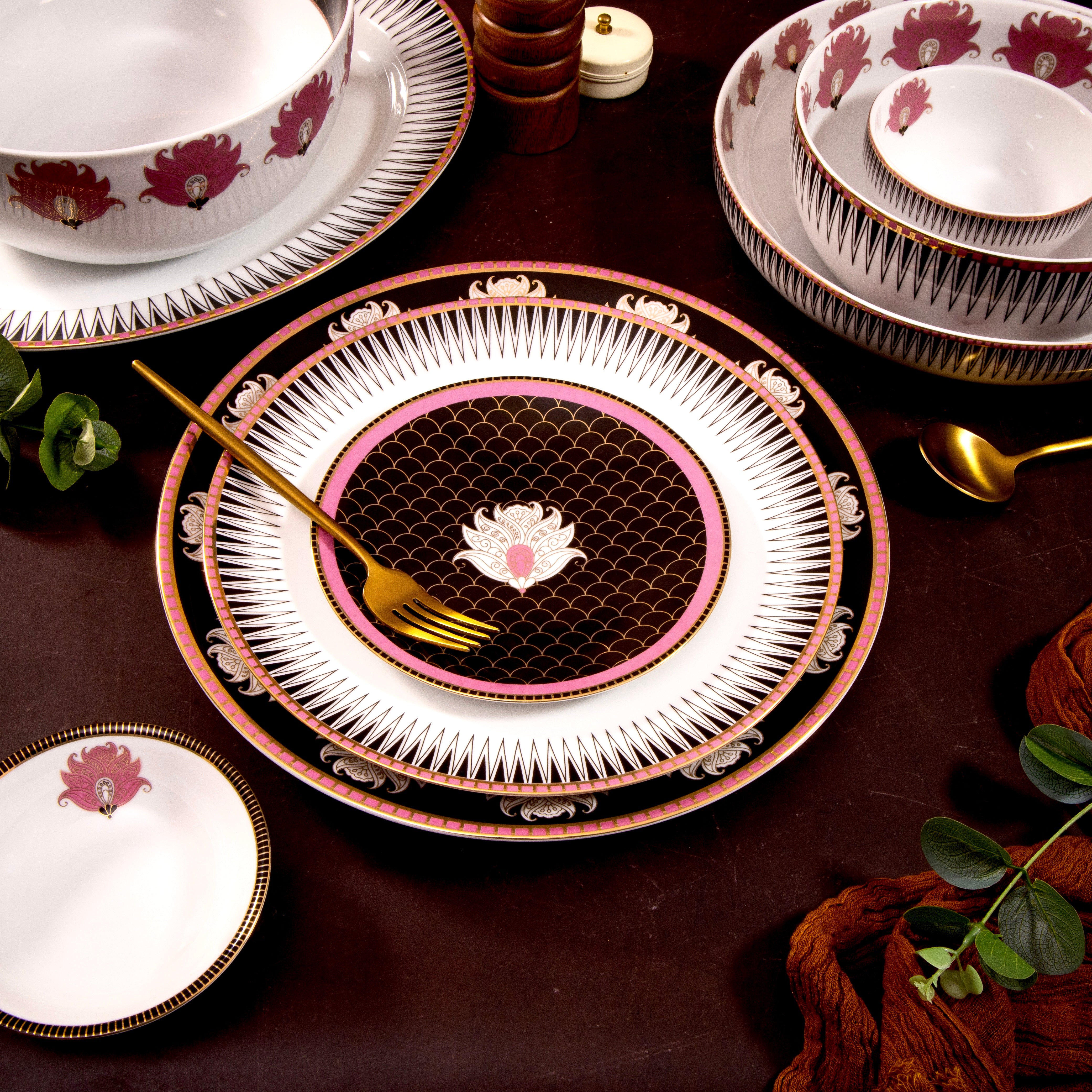 Material: Porcelain adorned with food-safe colors and luxurious 24-carat gold plating.